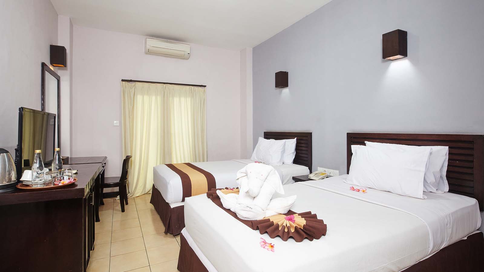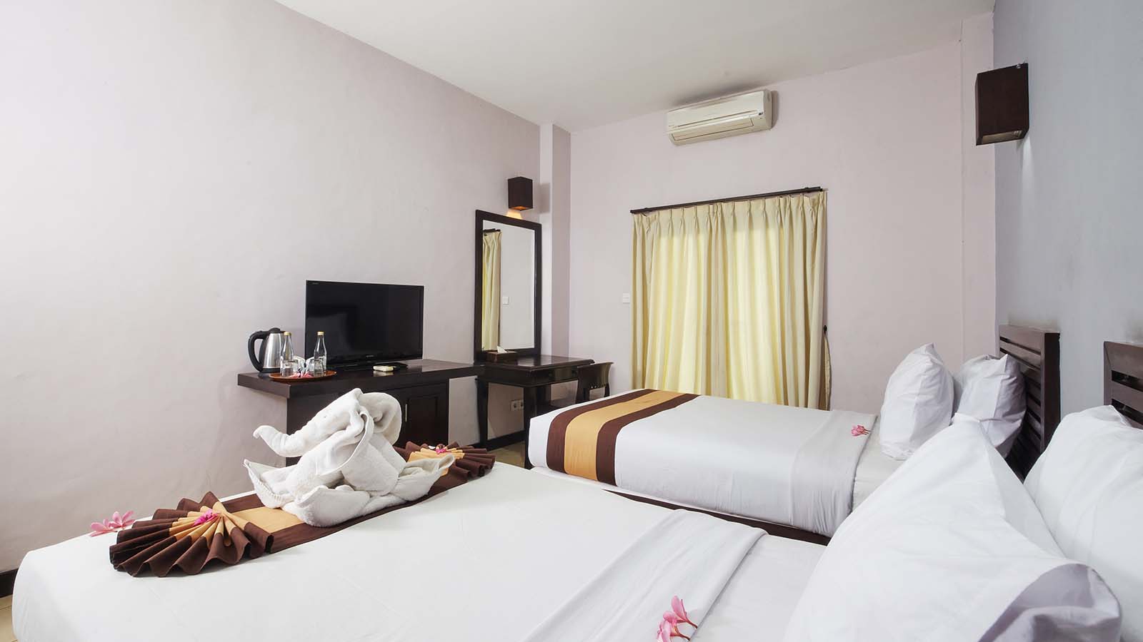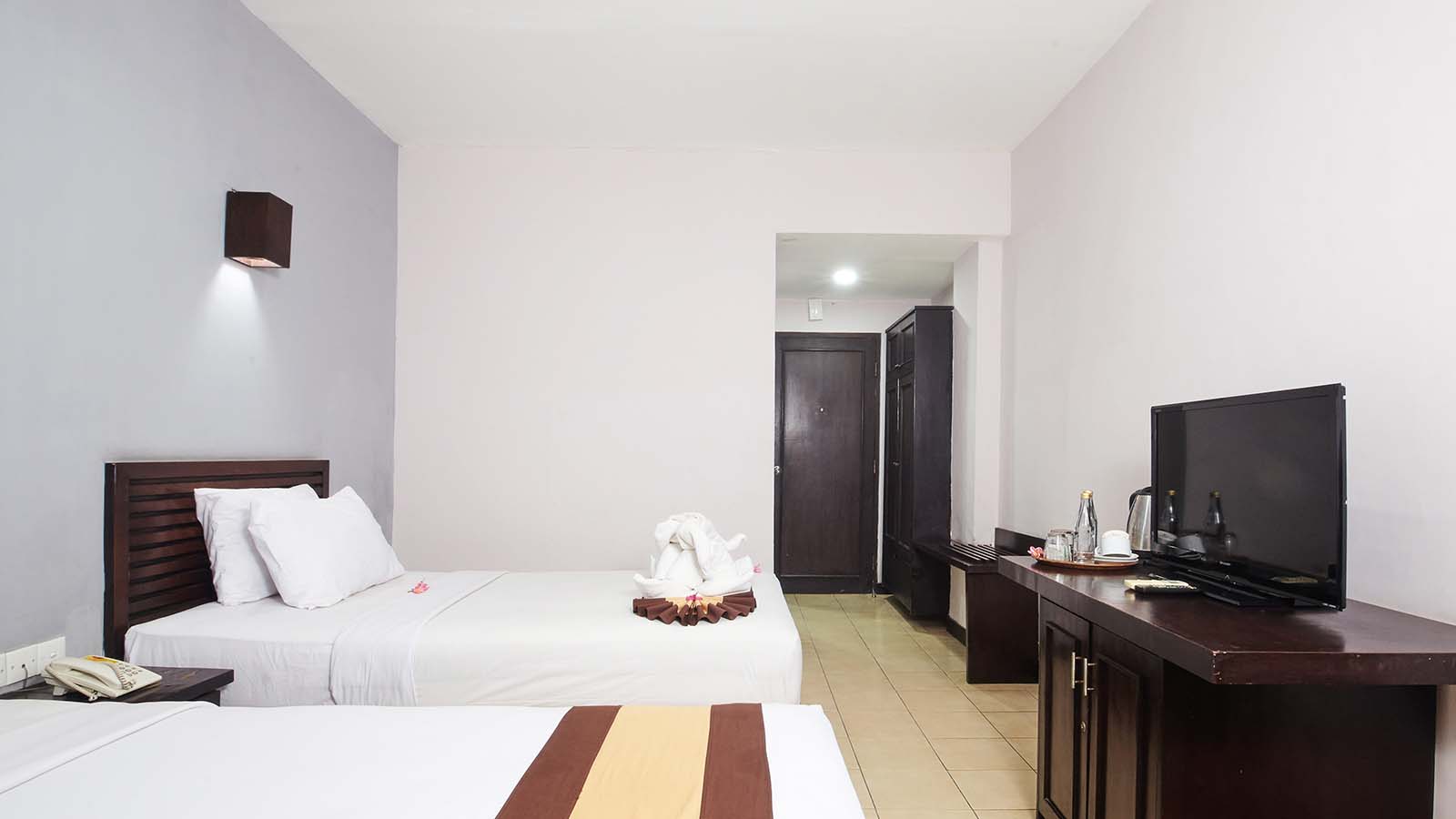 Nikmati perpaduan sempurna antara pesona Bali dan kenyamanan modern di Kamar Deluxe kami. Dirancang untuk pelancong bisnis maupun rekreasi, kamar yang luas ini dilengkapi tempat tidur queen atau twin yang nyaman, meja kerja khusus, dan balkon pribadi yang menghadap ke kota atau area kolam renang. Nikmati fasilitas seperti Wi-Fi berkecepatan tinggi, TV layar datar, kulkas mini, dan kamar mandi modern dengan shower air panas dan dingin.